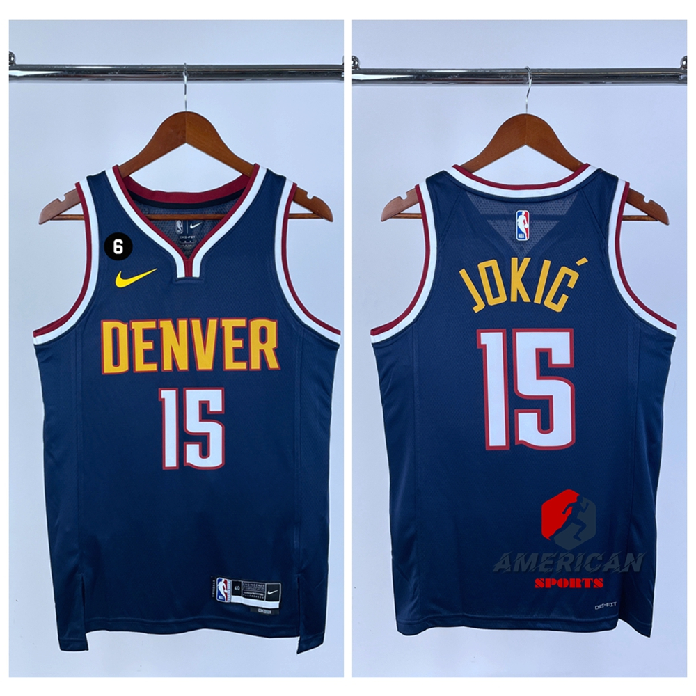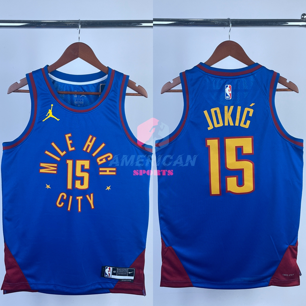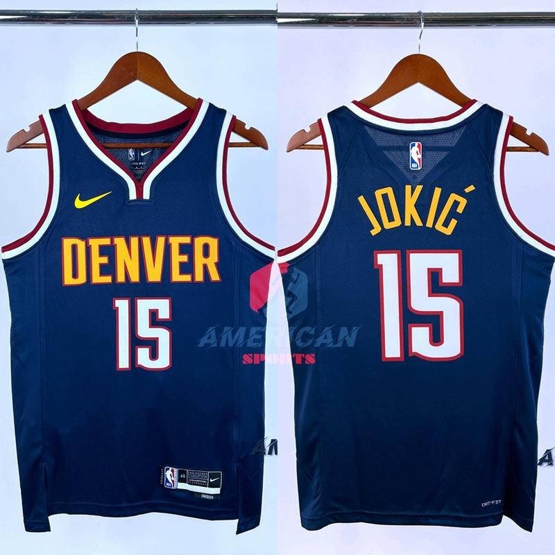 Masculina Camisa 2023NBA Camiseta de Denver Nuggets 15 Nikola Jokic Blue Basquetebol Jersey