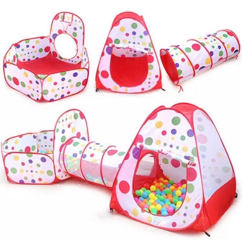 Tenda Tunel 3x1 Toca Barraca com Piscina Para Bolinhas e Cesta Basquete Playground Melhor Presente