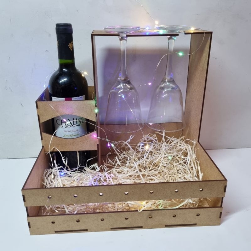 Cesta para VINHO e 1UMA TAÇA suporte , Presente Lembrança, Dia dos namorados- MDF cru