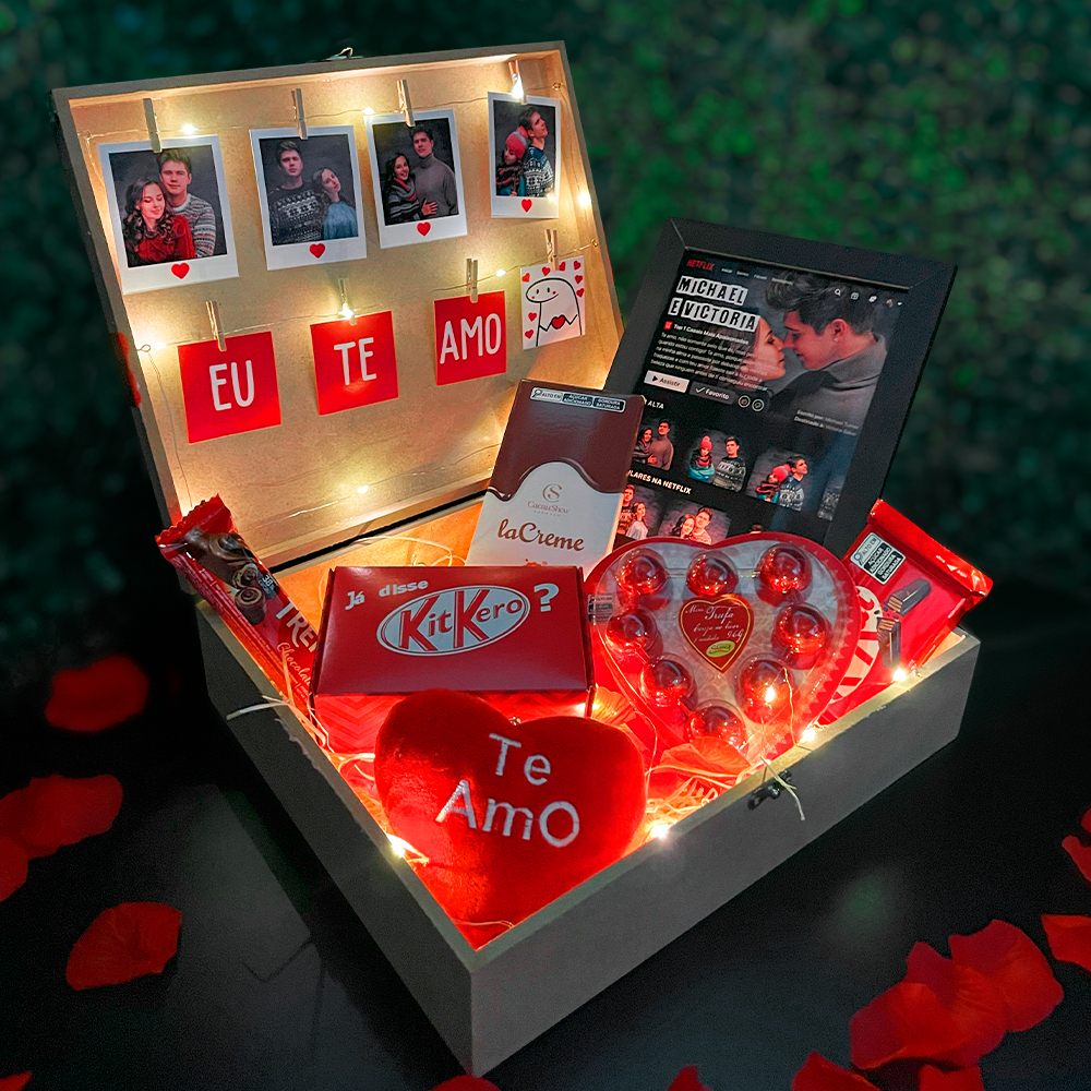 Cesta de presente na caixa led para namorados e casais com quadro netflix envio rapido