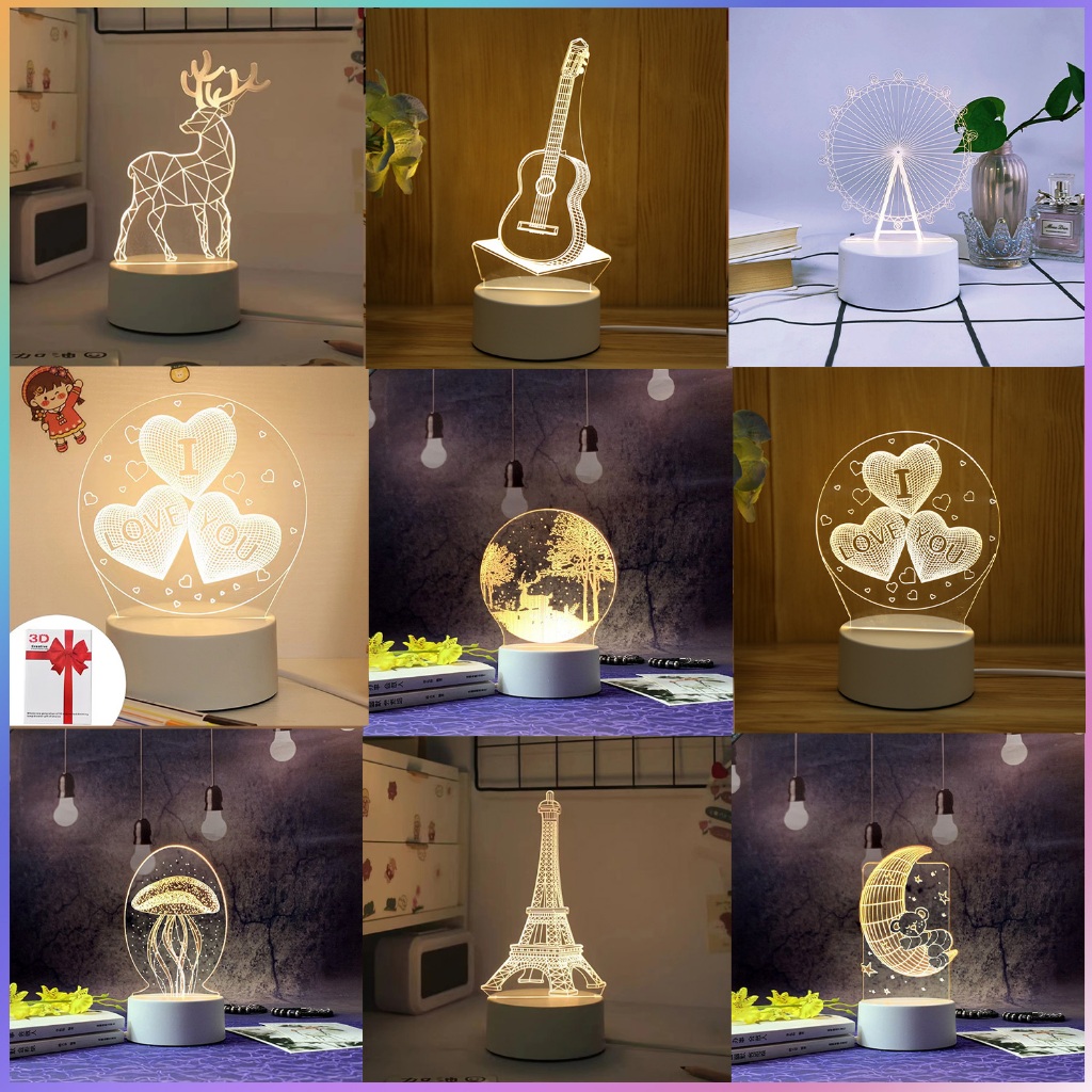Luminária de Mesa de LED 3D Criativa Luz Noturna Decorativa Luminária De Mesa Com LED 3D Criativa 3 Cores Decorativa Claro Noturna