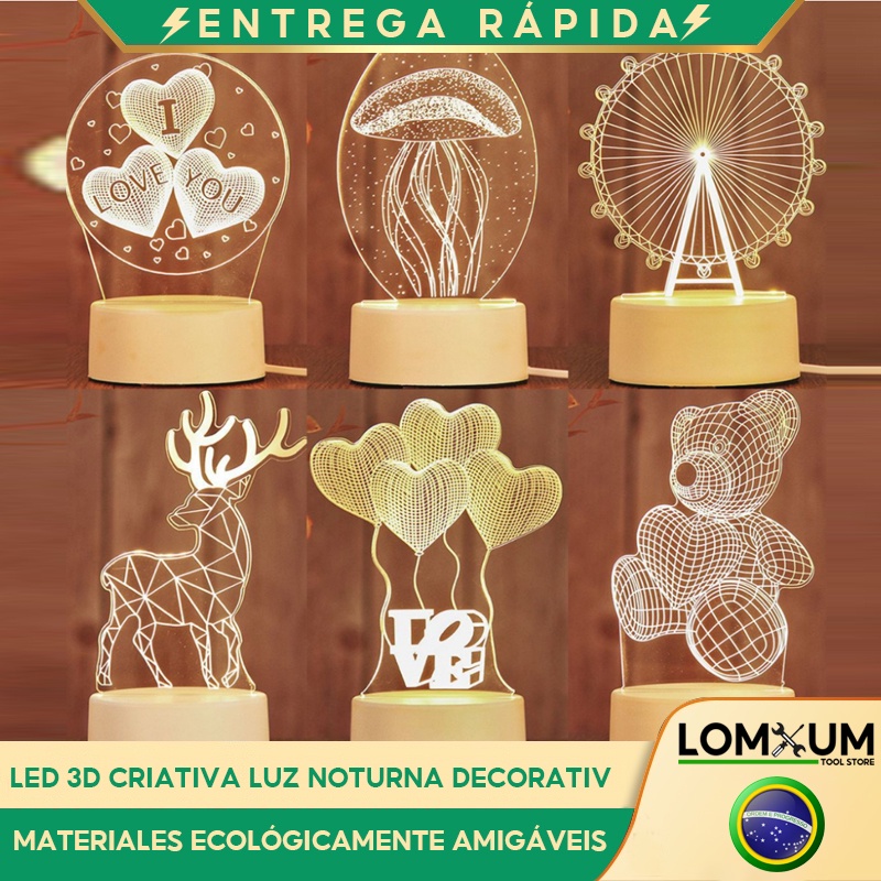 Luminária de Mesa de LED 3D Criativa Luz Noturna Decorativa Bivolt 3 Cores