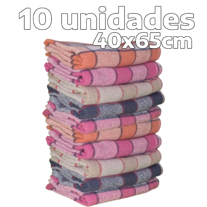 Kit 10 Panos de Prato Para Cozinha Copa Atoalhada Felpuda Malta 45x70cm 100% Algodão