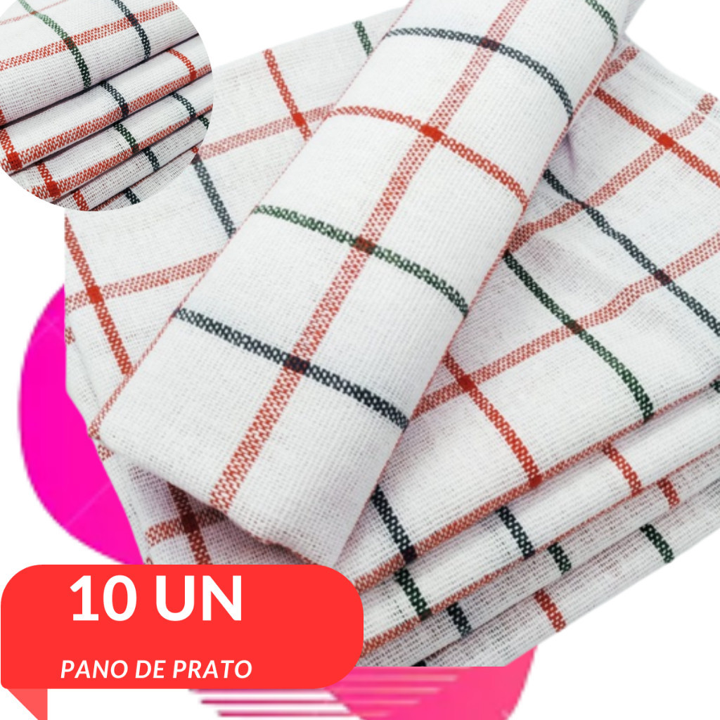 Kit 10 Panos De Prato Copa Cozinha 43x67 Grande Xadrez Toalha de Copa Estampado