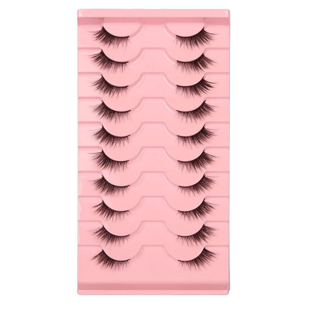 10 Pares de Cílios Postiços Mini Ultracurtos com Haste Transparente Natural e Ondulação para Encontros Diários Femininos