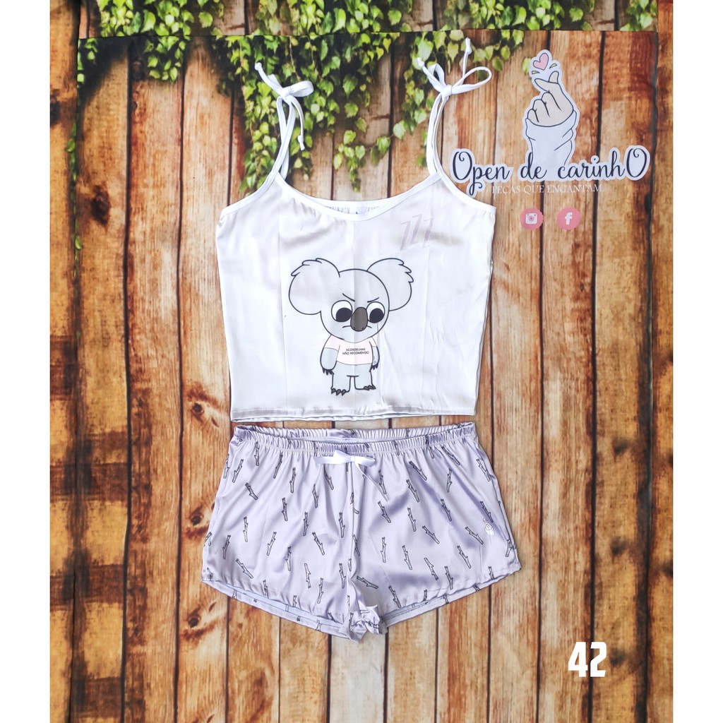 Pijama Short Doll Cetim Feminino Personagem Coala Baby Regata Adulto.
