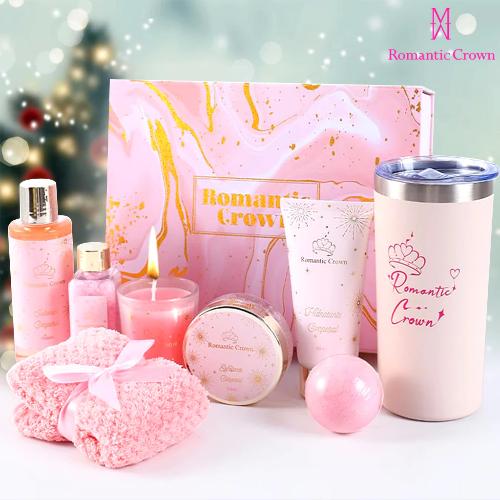 Kit Presente de Banho Feminino SPA com Copo Térmico Inox,Ideal para Aniversário e Natal,Conjunto Cesta para Presente