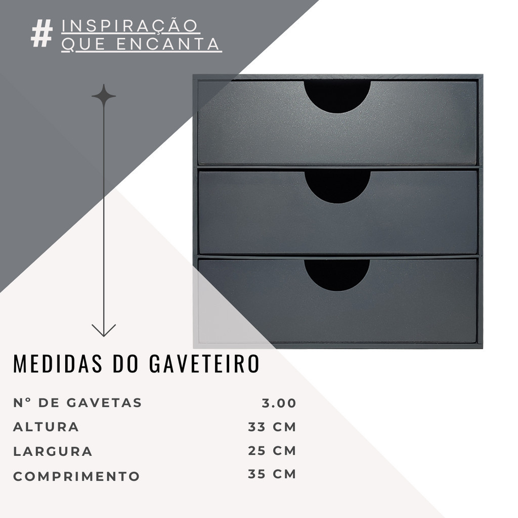 Gaveteiro Organizador Com 3 Gavetas Em Madeira Mdf Multiuso A4 Color