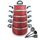 Jogo de Caçarolas 05 Peças Cereja com Tampa de Vidro e Utensílios