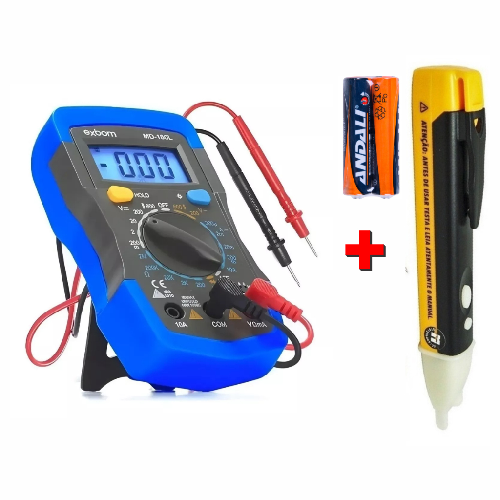 Kit Multimetro Digital + Caneta Teste Tensão Corrente Exbom