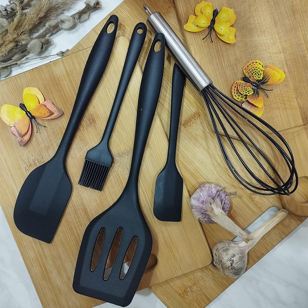 Kit 5 Peças Utensílios de Cozinha Silicone Colher Espátula Fue Espátula Pequena Pincel - ABCSHOP