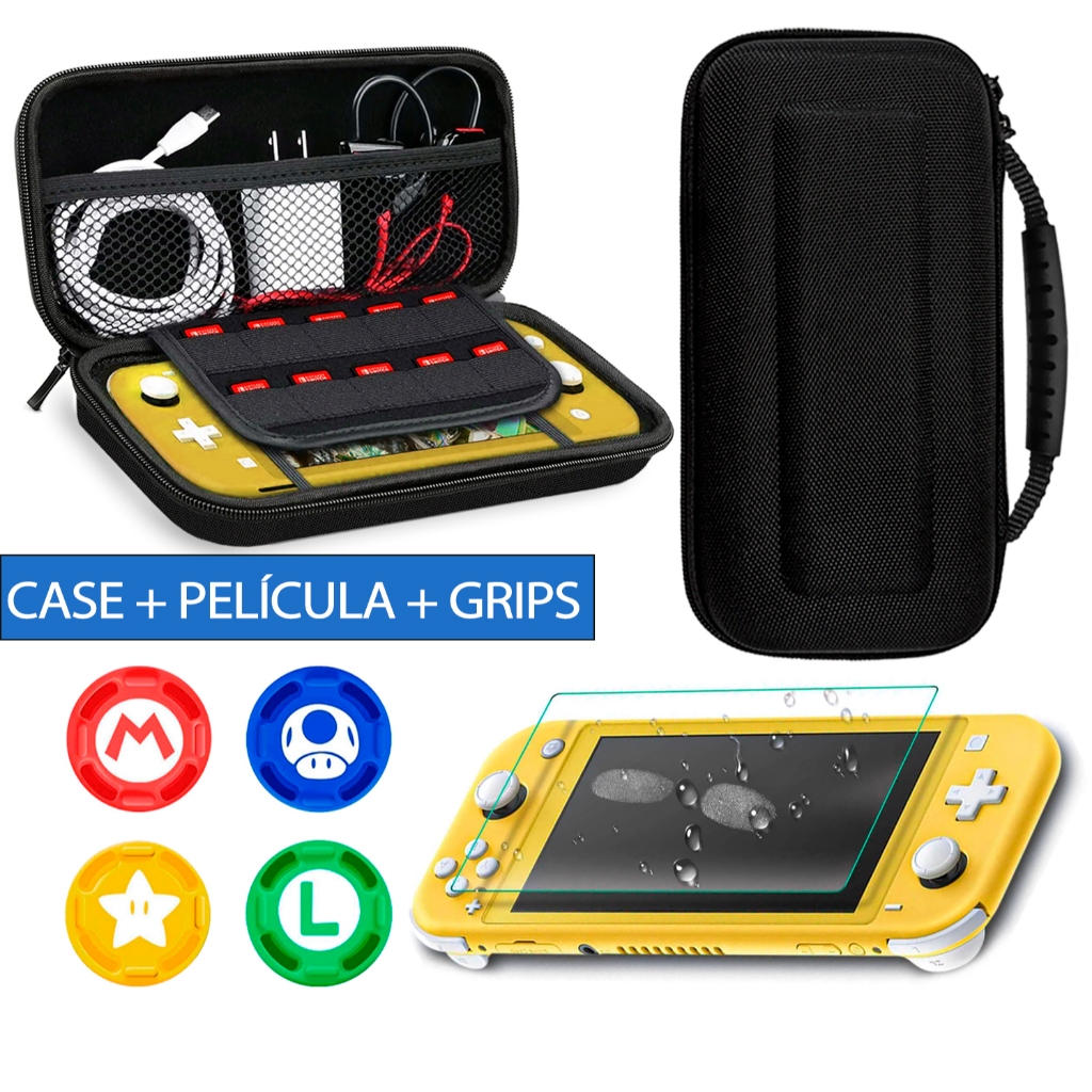 Bolsa Estojo Case Bag Premium Resistente Para Nintendo Switch Lite Proteção + Película Vidro e Grips