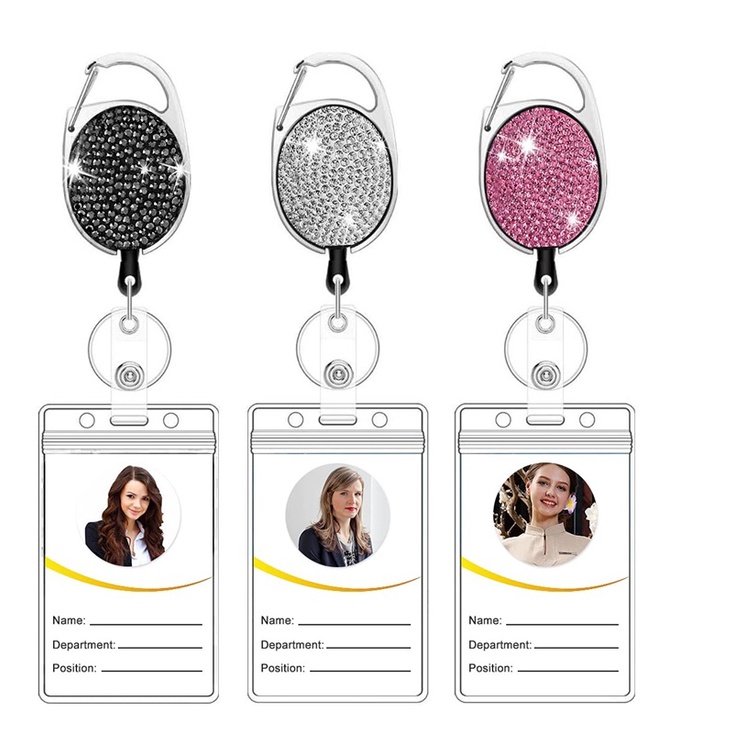 Porta-Carretel Retrátil De Crachá , De Strass Brilhante À Mão Com Clipe De Cinto E Chaves Cartões De Identificação Transparente