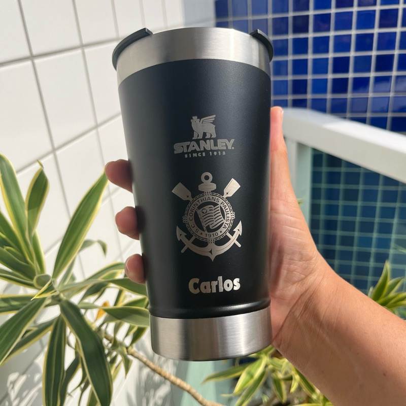 Copo Stanley Copo Térmico de Time em Inox de 473ml com Tampa e Abridor Quente e Gelado Envio Imediato Palmeiras/Corinthians/Santos/São Paulo/Flamengo/Fluminense/Gremio