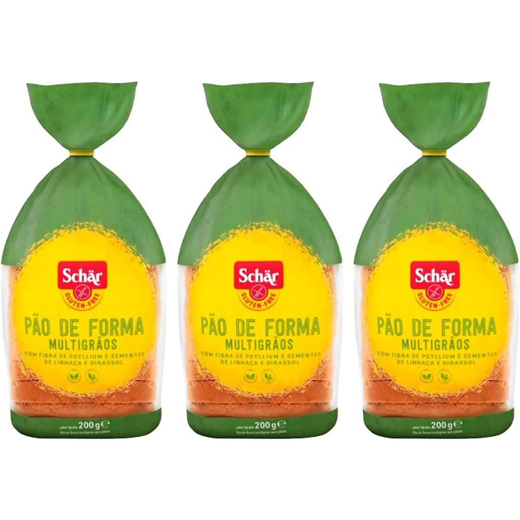 Kit 3 Pão de Forma Multigrãos Schar Sem Glúten e Lactose 200g