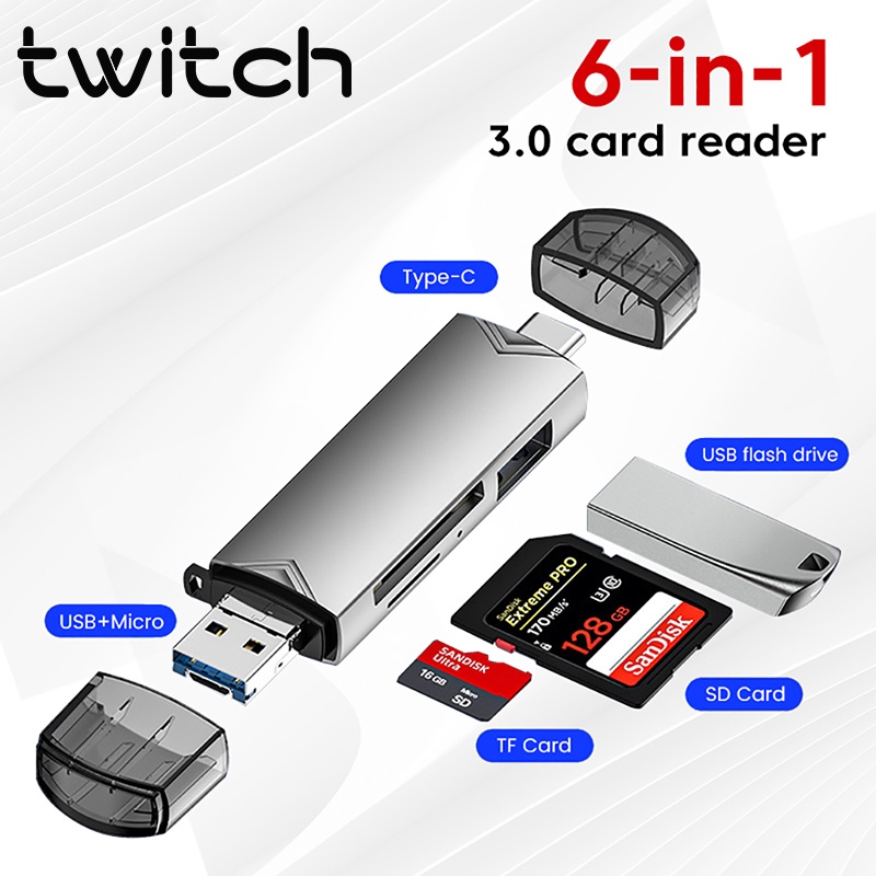 Twitch 6 Em 1 Leitor De Cartões OTG USB3.0 Para Micro USB Tipo C Adaptador Flash Drive De Memória Inteligente TF Câmera Mini SD Card Reader