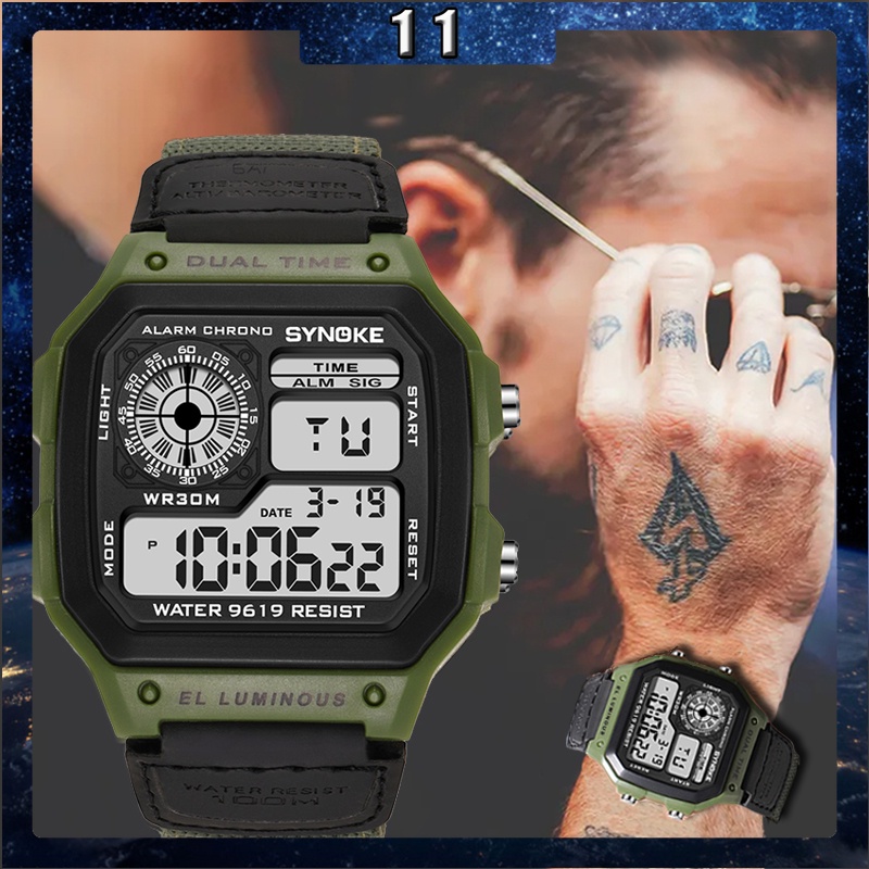 SYNOKE Relógios Dos Homens Do Esporte À Prova D'água retro Relógio digital Para led Eletrônico design nylon Homem Militar De Pulso