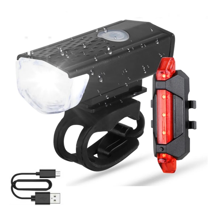 Farol Para Bike Bicicleta + Sinalizador Pisca Traseiro Led Usb A Prova D'água Recarregável