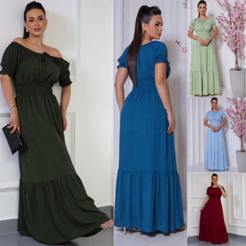 Vestido Evangélico Feminino Longo Elegante De Festa Tem Forro Com Elástico