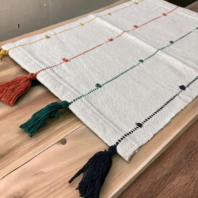 Lugar Americano Artesanal Tear Pompom para Compor e Decorar Mesa Posta 34cmx47cm