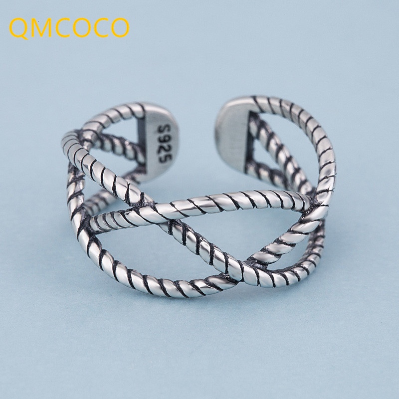 QMCOCO INS Estilo Criativo Design Simples Anel Irregular Ajustável Retro Prata Cor Aberto Para Mulheres Homem Jóias Presente