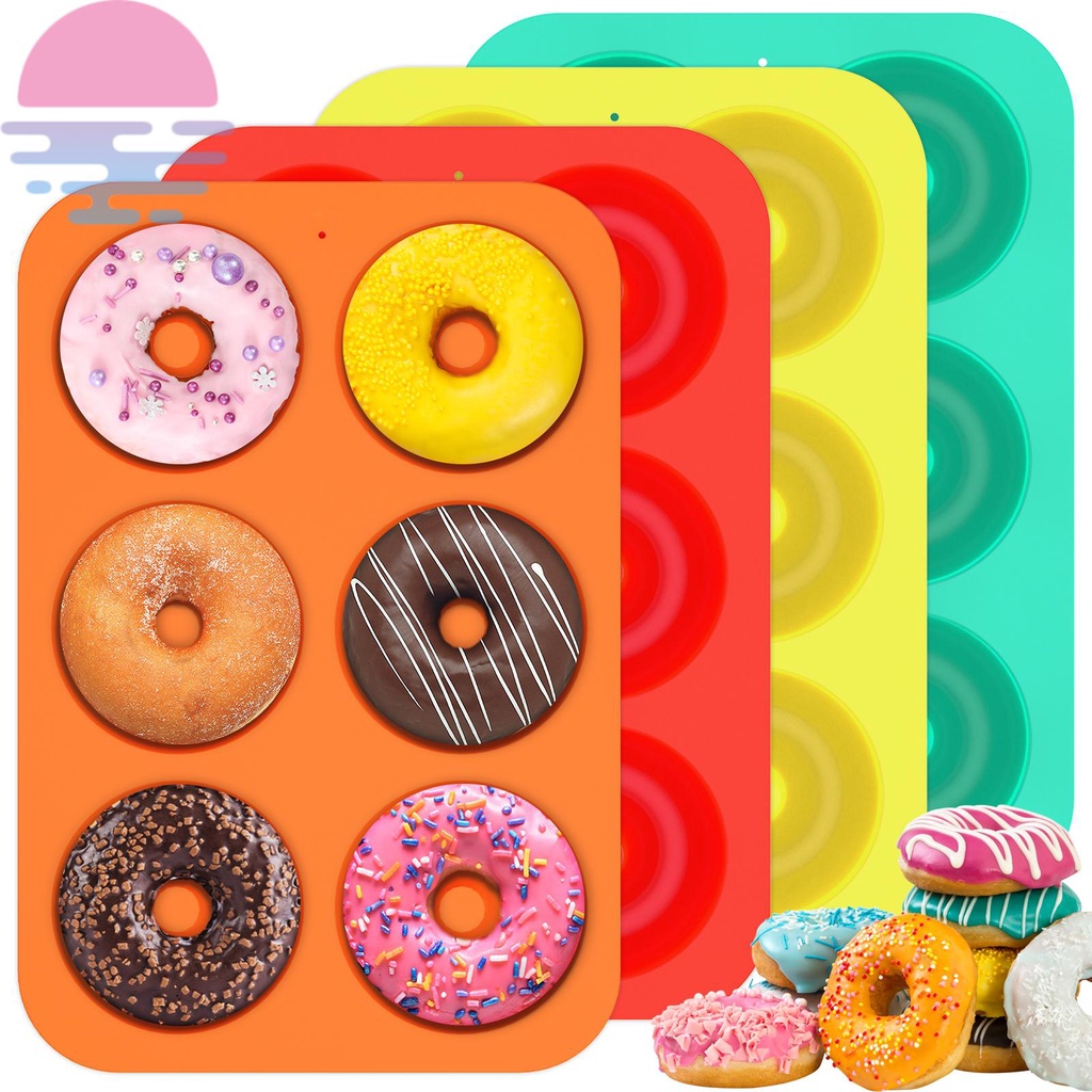 4Pcs Molde De Donut De Silicone 6 Cavity Doughnut Mould Tray Non-Stick Panela Fácil De Soltar Muffin Baking Empilhável SHOPSKC4999