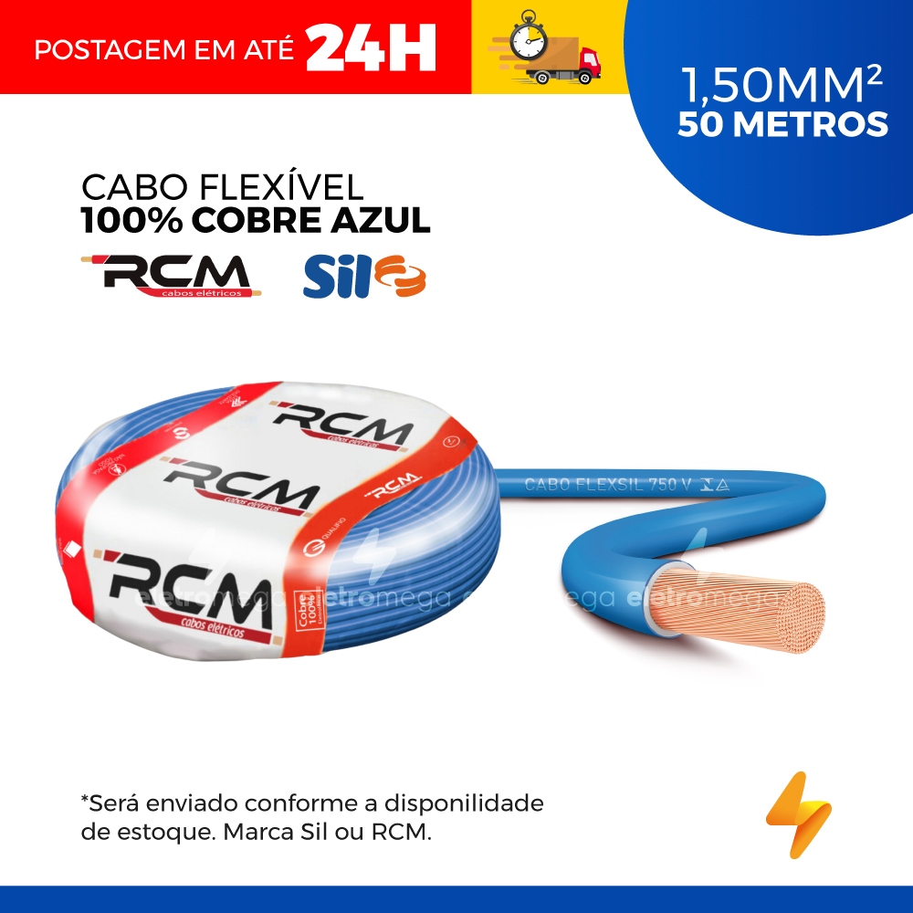 Cabo Flexivel 1,50 Mm² 50 Metros 100% Cobre Azul - Sil Ou Rcm