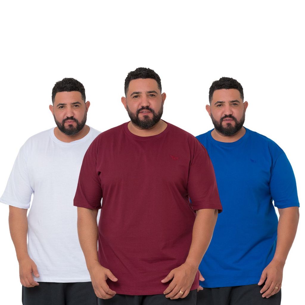 KIT 3 CAMISETAS PLUS SIZE MASCULINA CAMISA GOLA REDONDA G1 AO G6
