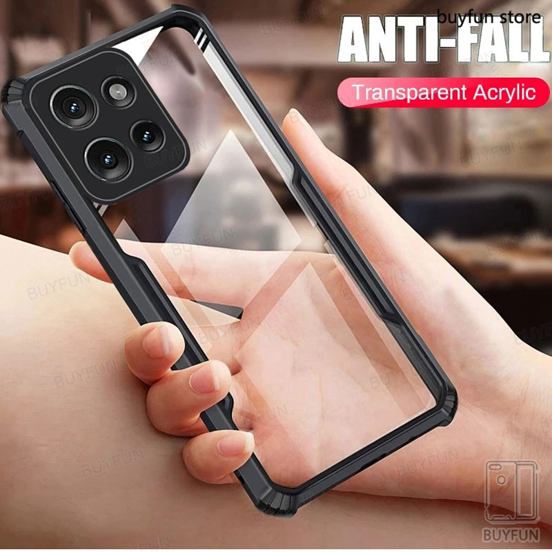 Capa Traseira Com Moldura De TPU Acrílico Transparente Para Câmera Motorola Moto G75 À Prova De Choque