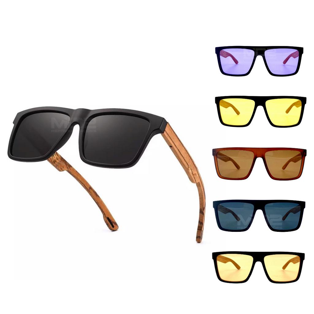 Óculos de Sol Masculino Quadrado Madeira Bambu Clássico RF528