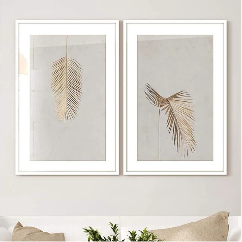 Kit Quadro Decorativo Folha de Palmeira Dourada com Textura