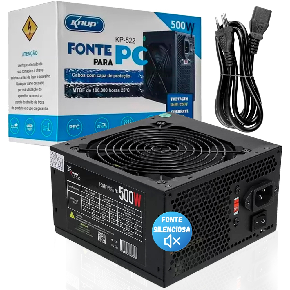 Fonte Atx 500w Gamer Ultra Silence Pc Gamer Bivolt 110v/220v Cor Preto