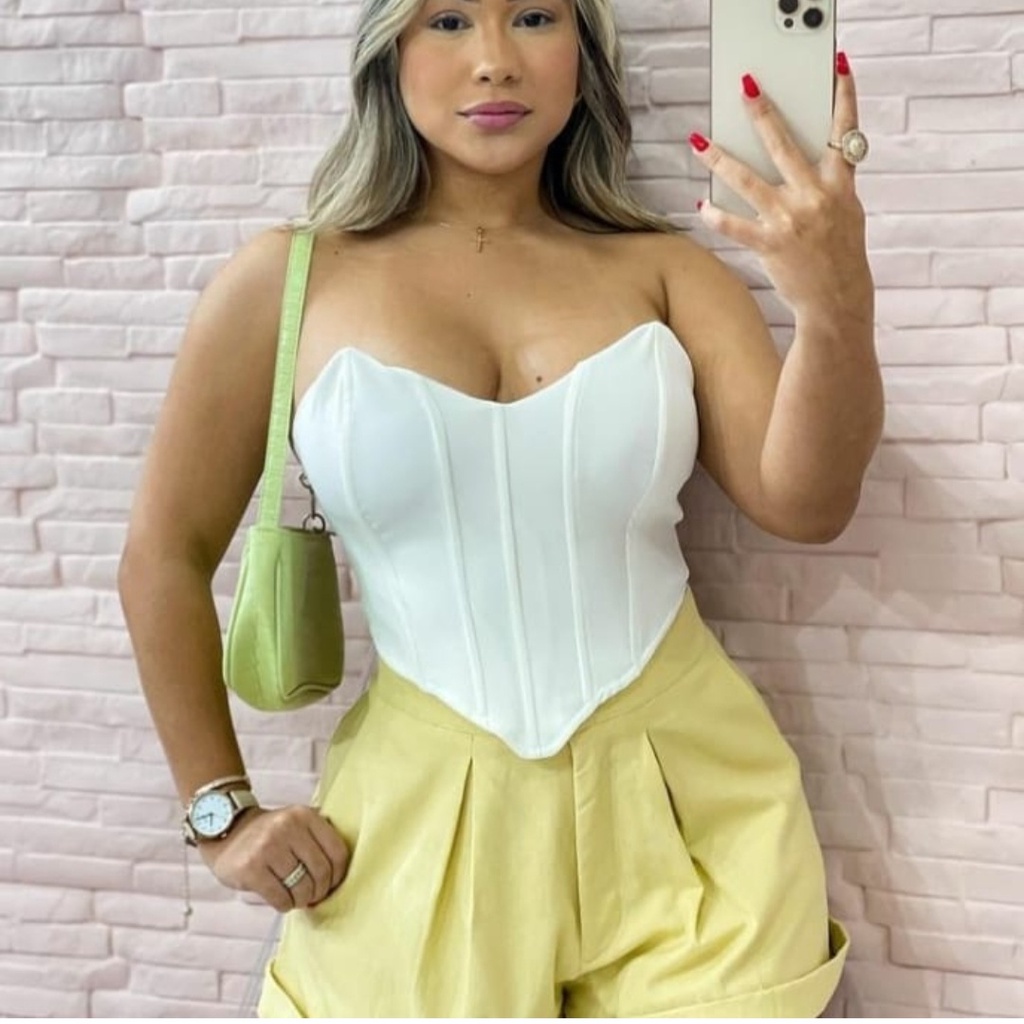 Cropped Feminino Plus Size Cirre Corselete Corset Corpete Top Tomara Que Caia Com Bojo Festa Final de ano