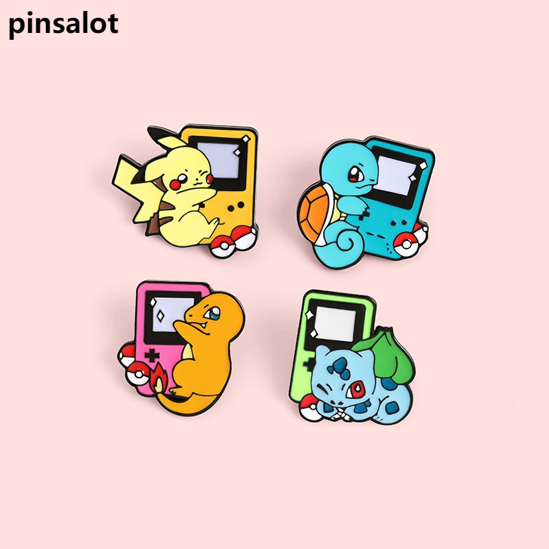 Jogo Console Broche De Animação De Alfinete Personagem De Desenho Animado Pikachu Pequeno Dragão De Fogo Bulbasaur Metal Versátil Crachá Deco Personalizado