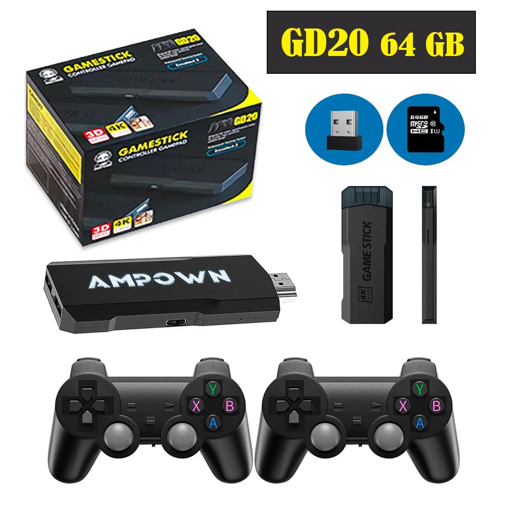 Game Stick GD20 Original Ampown 64GB +40.000 Jogos + 2 Controles sem fio + Pilhas Video Game Retro Emuelec