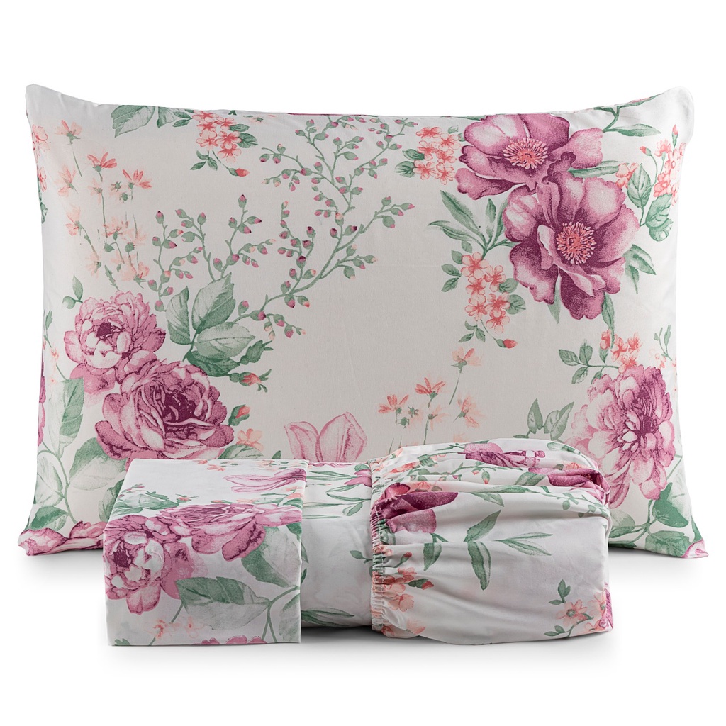 Jogo de Lençol Queen Size 03 Peças Percal 180 Fios Algodão com Elástico Cama Box Macio Estampado