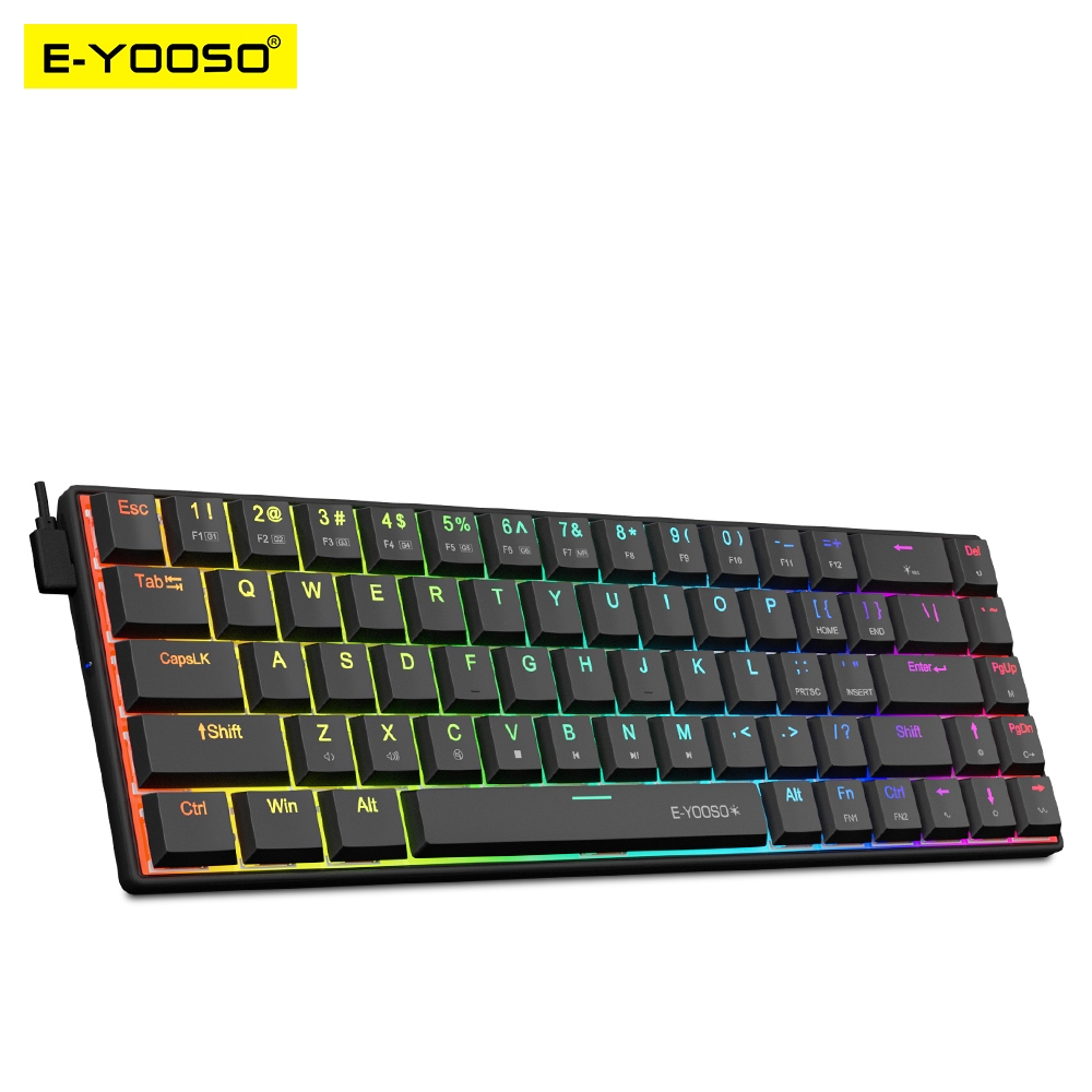E-YOOSO A68 RGB Mini Slim USB Teclado De Jogo Mecânico Com Fio Interruptor Vermelho 68 Chaves Gamer Russo Brasileiro Para Computador Portátil PC