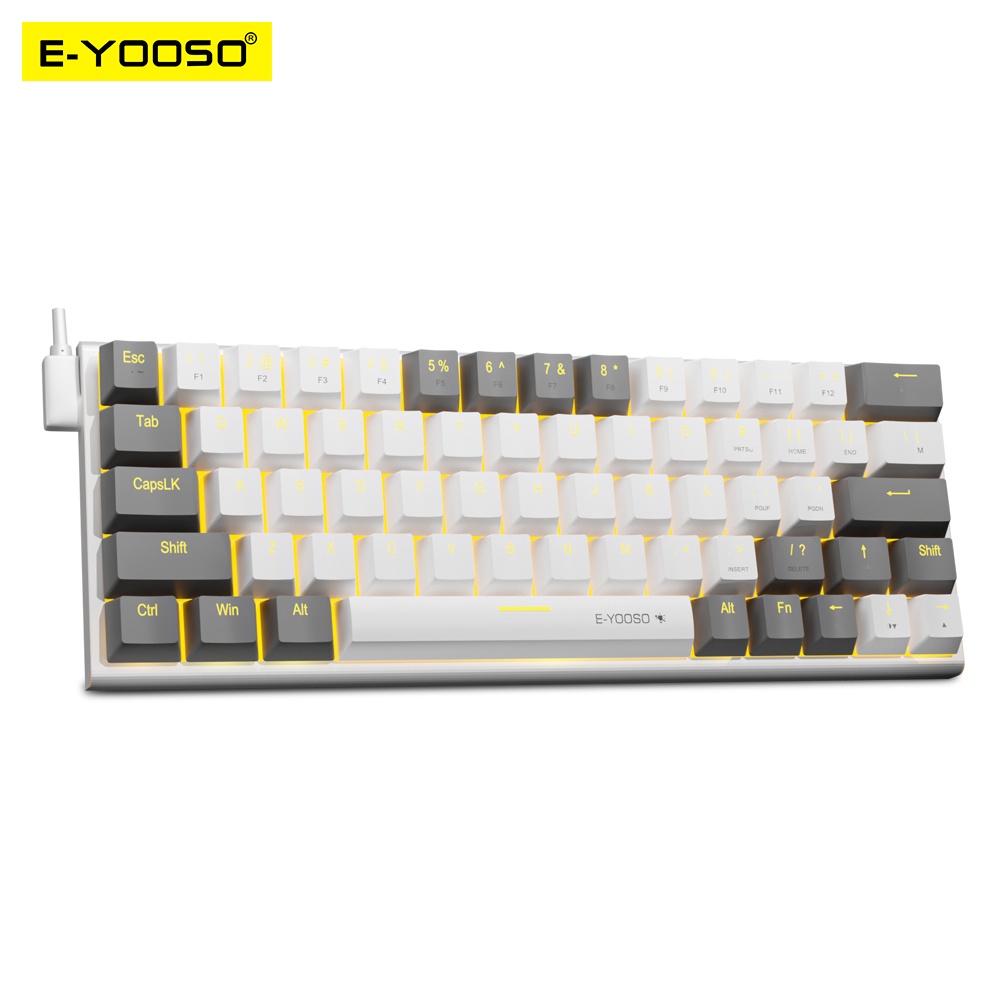 E-YOOSO Z11 USB 60 % Mini Teclado Mecânico Para Jogos Interruptor Vermelho Azul 61 Teclas Cabo Destacável Com Fio , Portátil Computador De Viagem