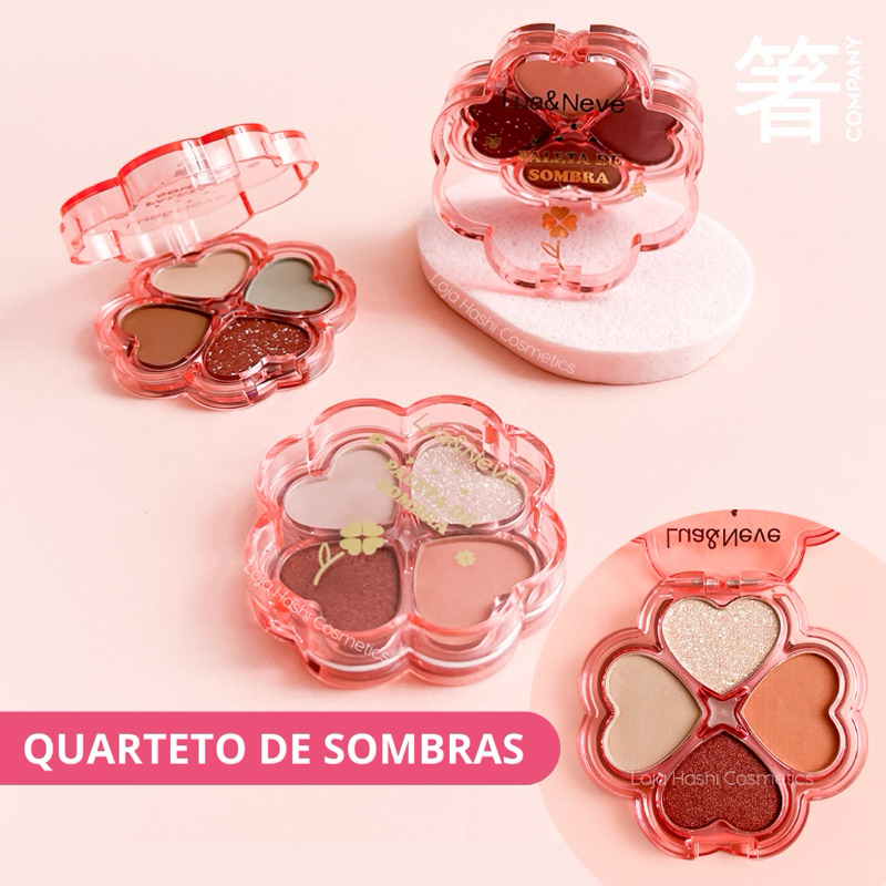 Paleta de Sombras Quarteto Lua e Neve Rosa Matte Cintilante Glitter Nude Pequena na Marrom Strawberry