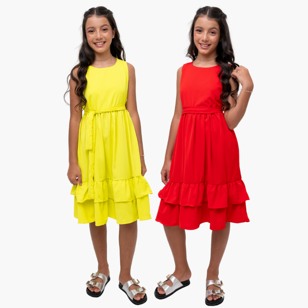 Kit 2 Vestidos Mid Infantil Menina Juvenil no tecido 4, 6, 8, 10, 12 e 14 anos cor lisa