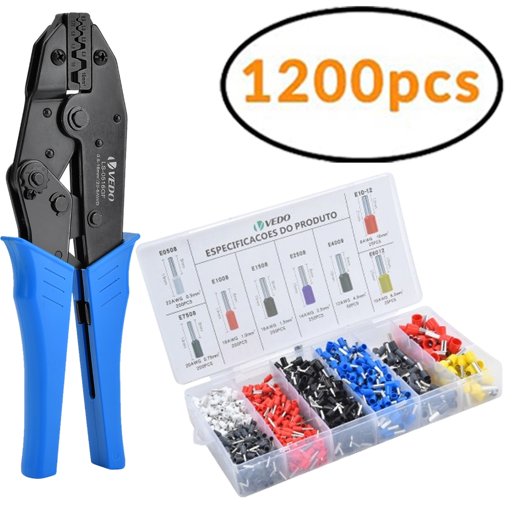 Alicate Crimpar Prensa Box Com 1200 Peças Terminal Ilhós Tubolar Isolado Duplo 0,08 Até 16mm²