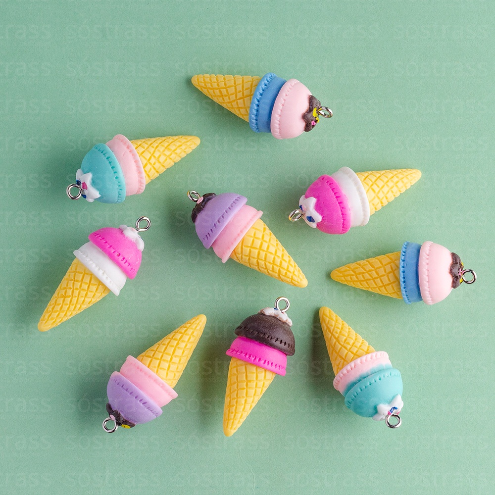 Pingente Sorvete Casquinha 15x34mm Candy Colours. Embalagem com 10 unidades