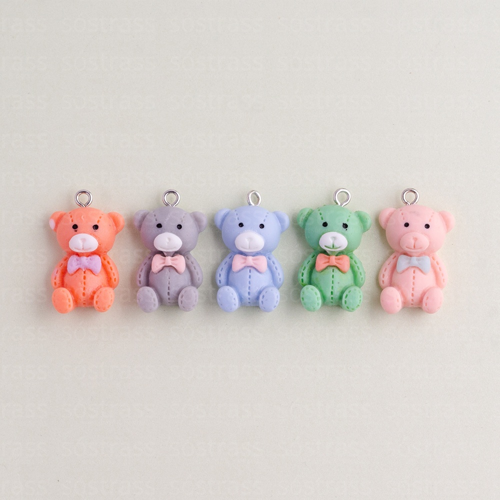 Pingente Ursinhos Resina 15x24mm Candy Colors. Embalagem com 10 unidades