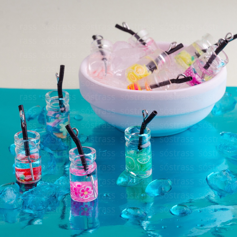 Pingente Copo de Suco 10x30mm Diversos. Embalagem com 10 unidades