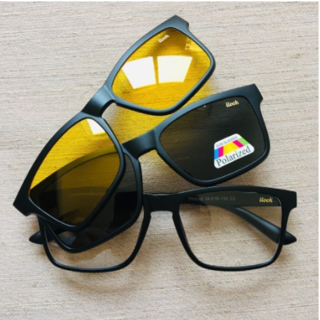 Armação de Óculos para Grau e Sol com Clip On 3 em 1 Porlarizado Uv Masculino Quadrado Adiconal Magnetico Dia e Noite