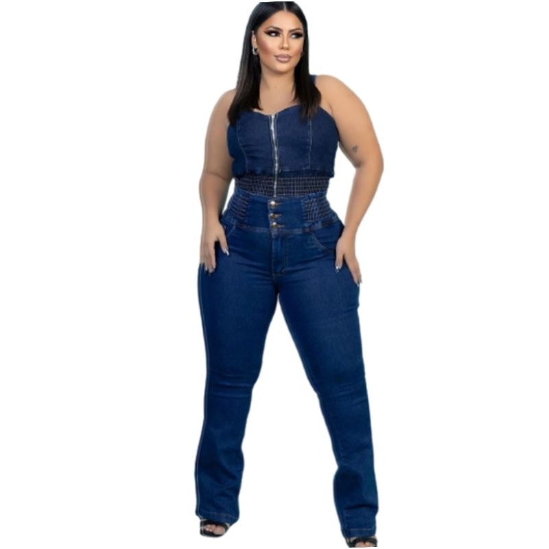 Calça Jeans Feminina Wide Leg Plus Size Cintura Alta
