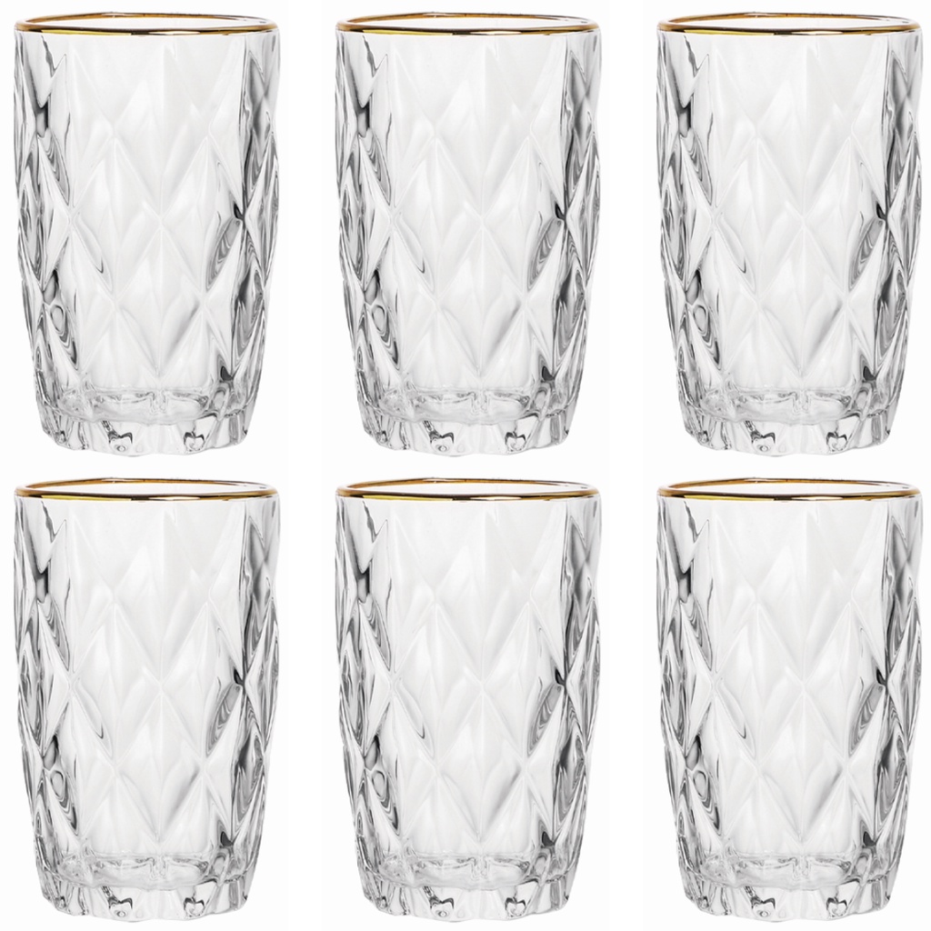 Jogo De 6 Copos Altos 350ml Borda Dourada Diamond Class Home