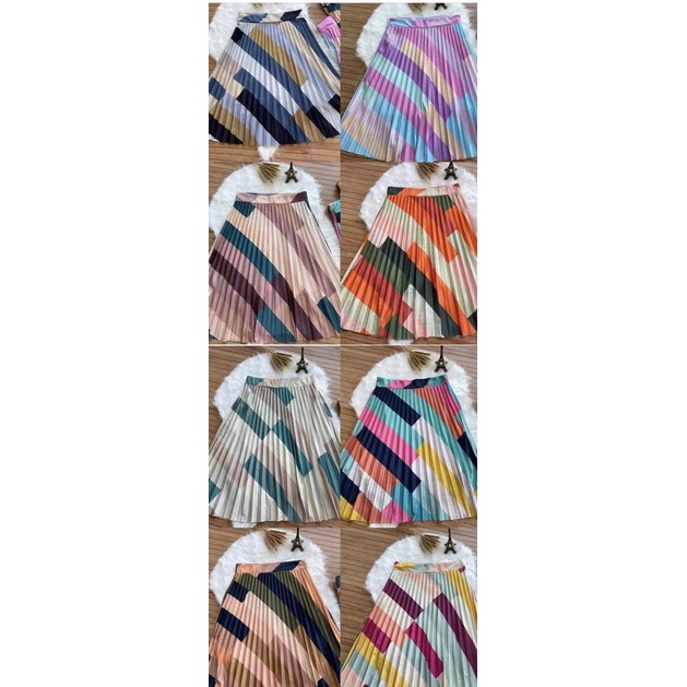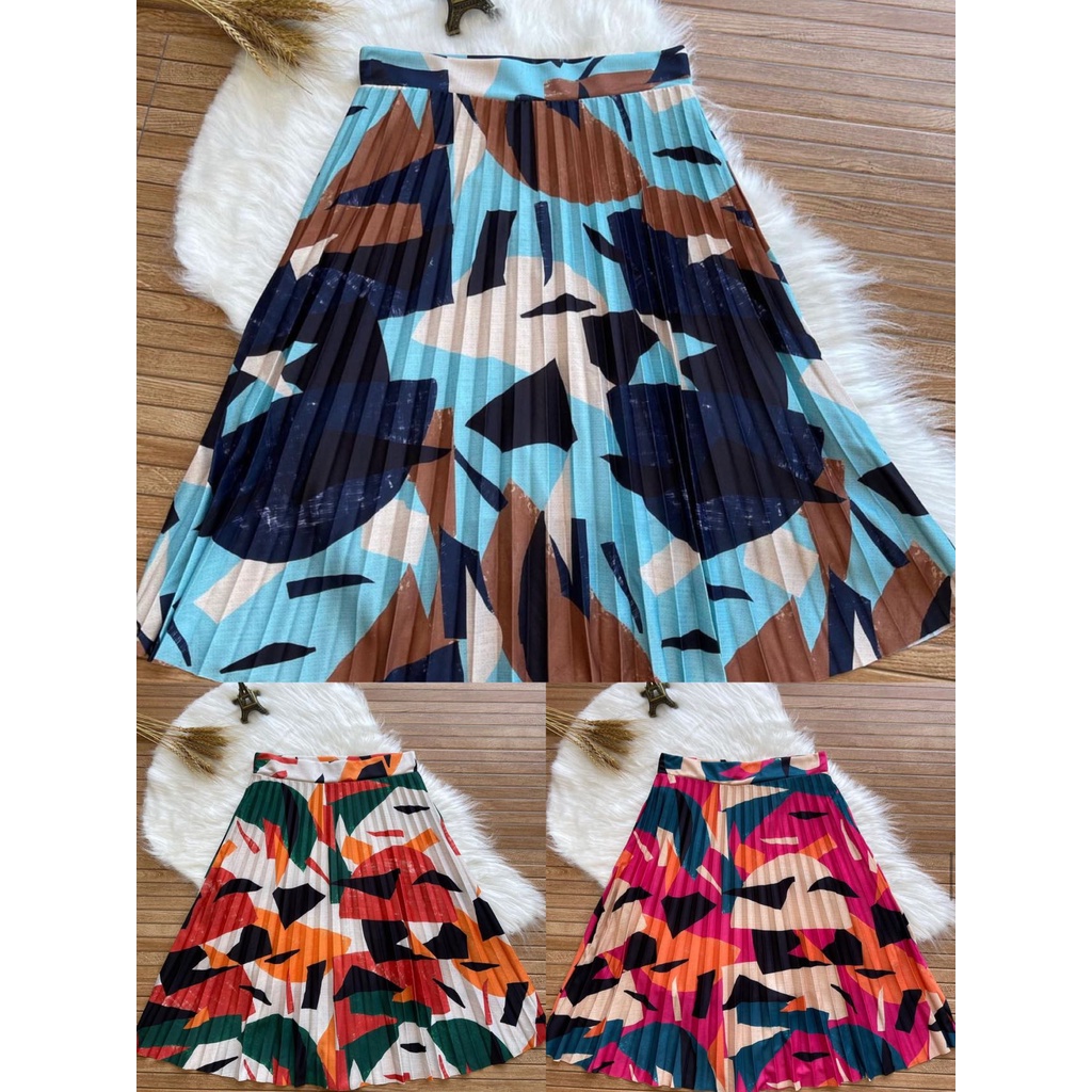 Saia Midi Plissada - Estampas Geométrica - Cintura Alta - Moda Evangélica k-15