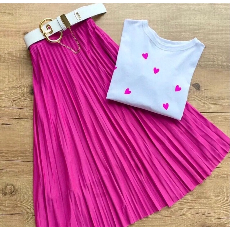 Saia Midi Plissada Moda Feminina Evangelica Com Forro Cintura Alta #01