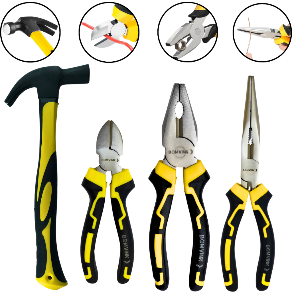 Kit Ferramentas Martelo Unha Alicate Universal de Corte Bico Reto Meia Cana